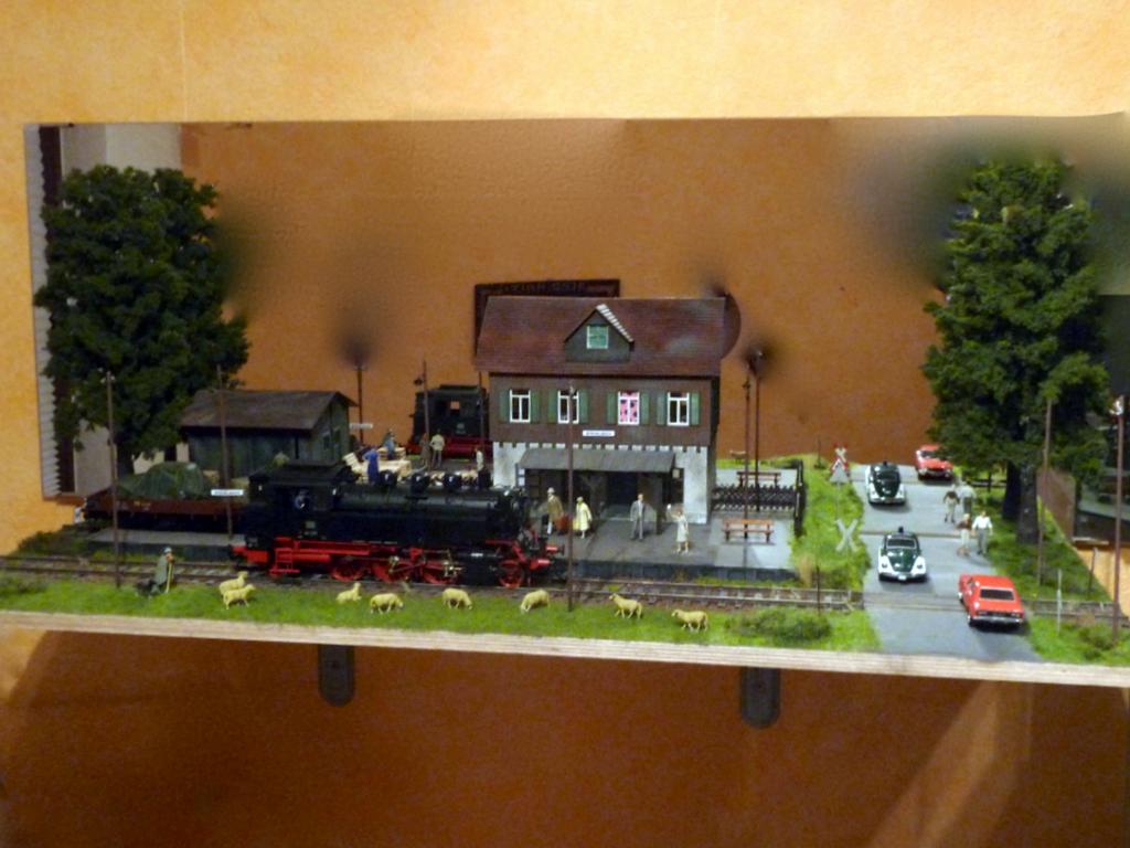 Dieses kleine und beschauliche Diorama stand viele Jahre in einer Vitrine im Eisenbahnfachgeschäft „Züge und mehr“ in Hamburg. Durch eine Umgestaltung im Ladengeschäft wurde die Vitrine im Juli 2012 aufgelöst und just zum richtigen Zeitpunkt stattete ich auch diesem Laden mal wieder einen Besuch ab. Und mein freundliches Fragen hat sich ausgezahlt. Das Diorama wechselte das Zuhause.