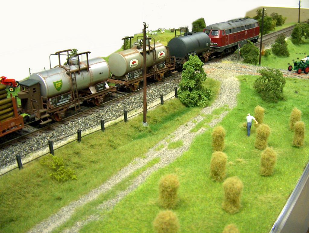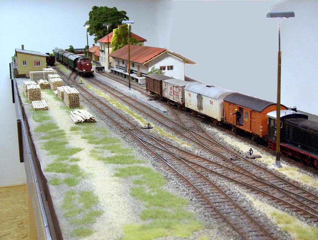 Durch den Einsatz von GmP´s kann überraschend viel Betrieb gemacht werden, da ja die Güterwagen von einer Köf an die betreffenden Abladestellen rangiert werden müssen. Desweiteren wird vor Ausfahrt des Zuges die (imaginär) be- oder entladenen Güterwagen, die mit dem vorherigen Zug gekommen sind, wieder an den Personenzug aus 4 Donnerbüchsen angehängt bzw. vorgespannt.