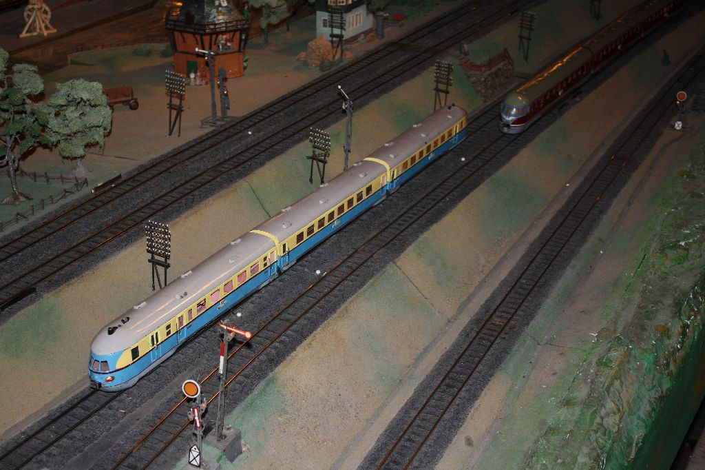 Die in Betrieb befindlichen Fahrzeuge (kleine Auswahl: VT 11.5, Fliegender Hamburger, VT 08.5, V200.1, V100.10, BR 01, Gliederzug Senator, Berliner S-Bahn, Heulboje ETA 178, fast alle zeittypischen Reise- und Güterwagen usw.) sind alle von Wilhelm Wendler aus den damals üblichen Materialien eigenhändig gebaut worden. Man sieht ihnen das Alter teilweise an, aber die modellbauerische Leistung ist ebenso ersichtlich.