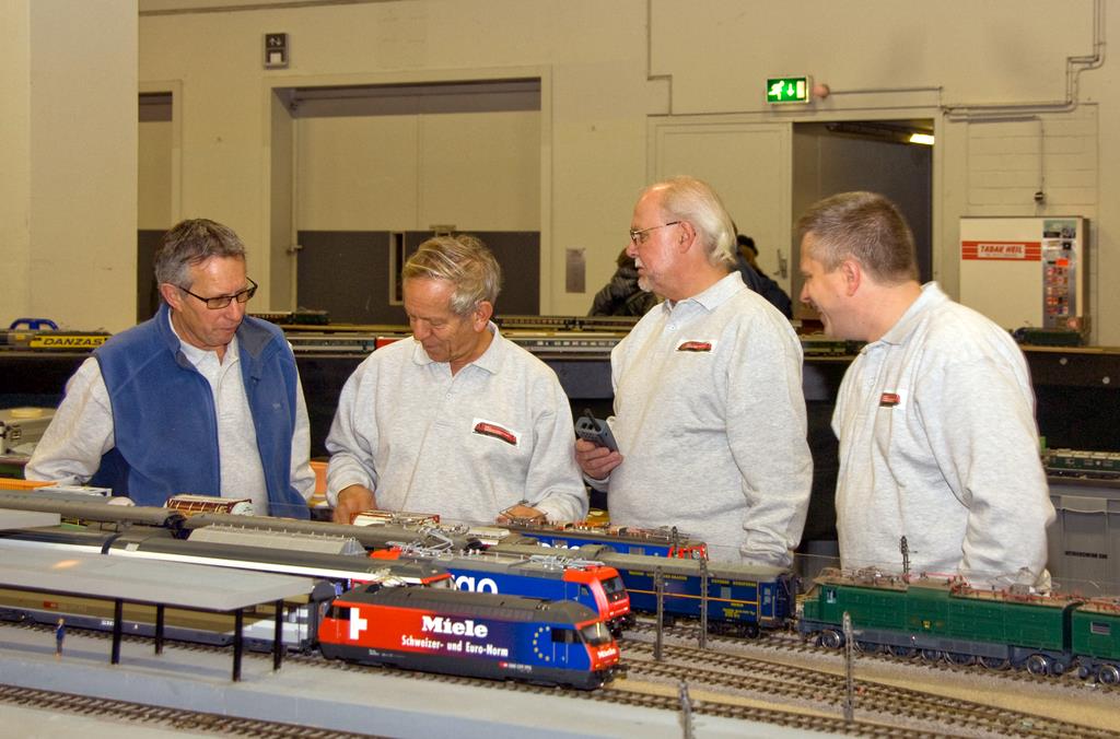 Donnerstag: 9.00 Uhr Beginn der Messe. Nach einigen Startschwierigkeiten am Morgen lief es am Nachmittag rund. Viele Besucher stellten Fragen über die Spur 0 Szene in der Schweiz und waren erstaunt wie viel Auswahl an Fahrzeugen es in allen Epochen es gibt. Wir staunten auch, wie viele Deutsche Eisenbahnfans unsere SBB, BLS, RhB, usw. kennen, wir konnten angeregte Gespräche führen und waren begeistert über die Messebesucher die grosses Interesse an unserer Anlage zeigten.