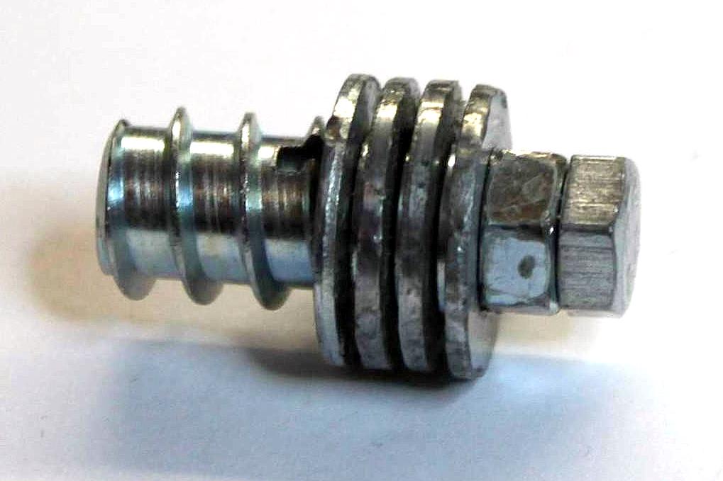 Eine lange M 5er Schraube nehmen, ca. 10 bis 15 Unterlegscheiben aufstecken und anschließend die Rampa Mutter mit etwas Holzleim ins Holz eindrehen. Dann die Unterlegscheiben mit einer Zange festhalten und die Schraube wieder rausdrehen, sonst kommt die Rampa Mutter beim Lösen der Schraube wieder mit raus.