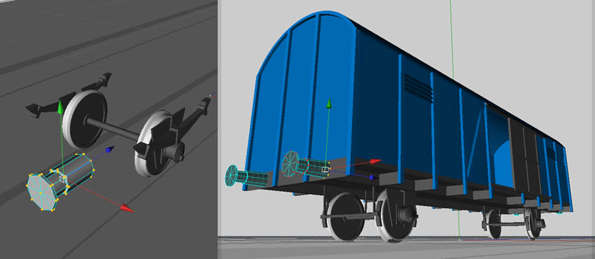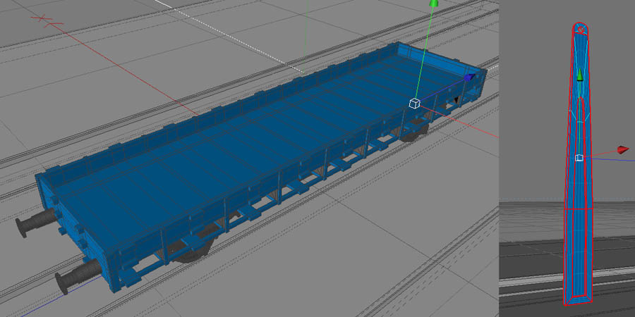 Grundsätzlich gilt für die Konstruktion von Rollmaterial dasselbe, wie für die Anlagenteile und Gebäude in den vorangegangenen Kapiteln: Alle Elemente sollen möglichst einfach, mit wenigen Punkten und Polygonen erstellt werden. Details, die aus dem üblichen Betrachterabstand nicht mehr erkennbar sind, lässt man weg oder vereinfacht sie stark (anders als bei CAD Vorlagen für die Modellkonstruktion). Ersatzweise können Detaillierungen mit Hilfe von Texturen geschaffen werden.