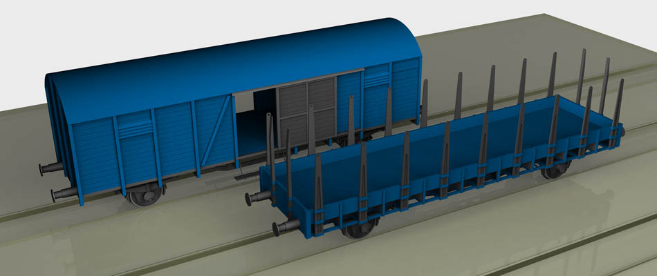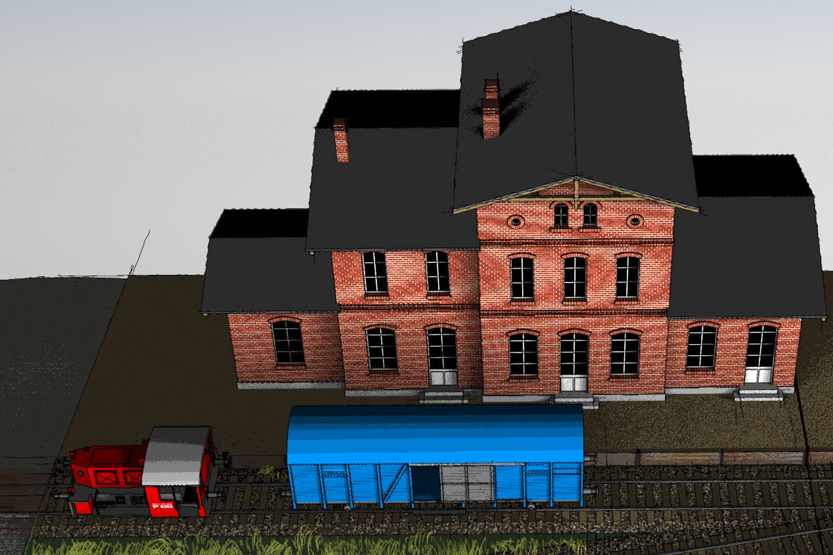Unsere 3D-Modellplanung, wie in den vorangegangenen Beiträgen vorgestellt, besteht momentan aus einigen Segmenten, die zum Teil schon etwas gestaltet und mit zwei Gebäuden ausgestattet sind. Eine Modellbahnanlage wird aber erst durch Fahrzeuge so richtig lebendig, das ist auch in einem virtuell erstellten Plan nicht anders. Wir wollen schließlich keinen Eisenbahnerstreik mit leeren Gleisanlagen darstellen, auf den Gleisen soll Betrieb stattfinden.