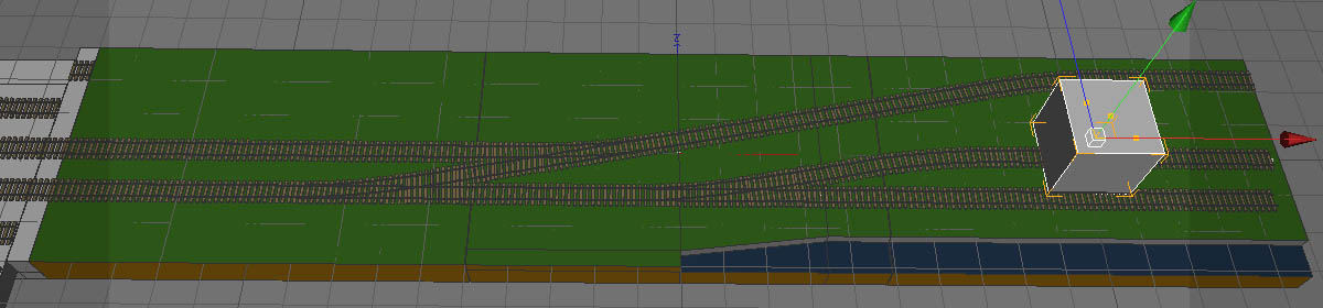 Im Beispiel wird wieder ein ganz flacher Würfel (die Schienen müssen gerade noch heraus sehen) mit den Hauptabmessungen des Platzes zu dem Bereich, wo im Hafen eingepflasterte Schienen liegen sollen.