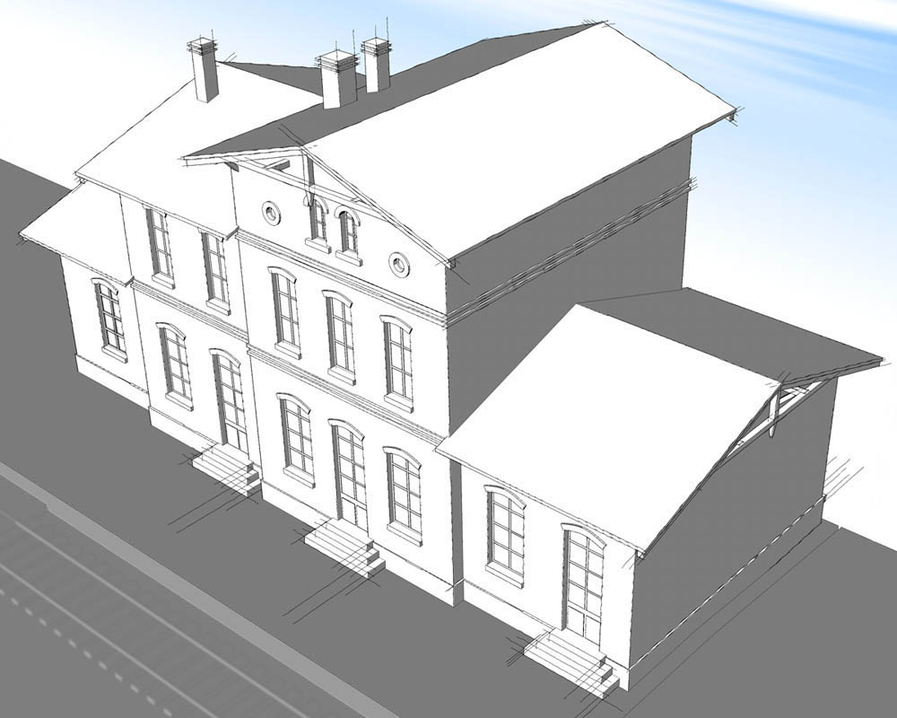 Die verschiedenen Straßen und Plätze, sowie der Bahnsteig sollen entstehen. Das ist relativ überschaubar, es sind ja flache, fast ebene Objekte.
