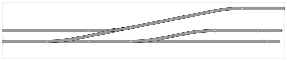 Deshalb wurde die Vereinfachung mit den zwei Rechtecken gewählt. Aus dem gleichen Grund werden in diesem Beispiel solche Details wie Radlenker an den Weichen einfach ignoriert.