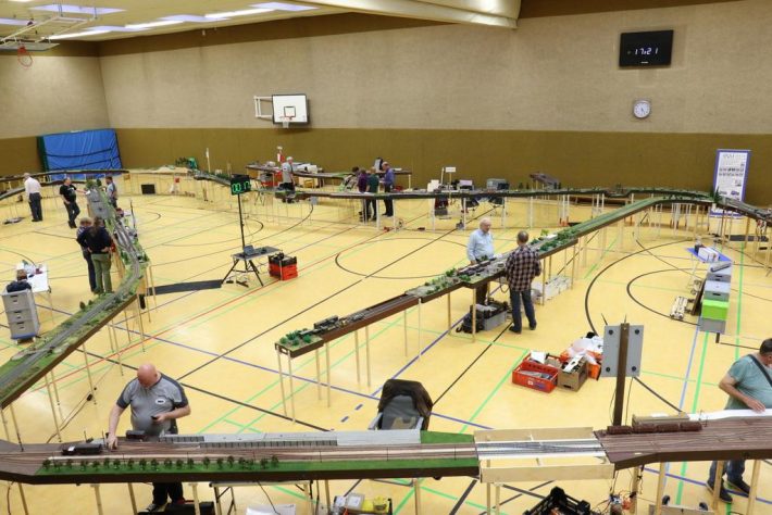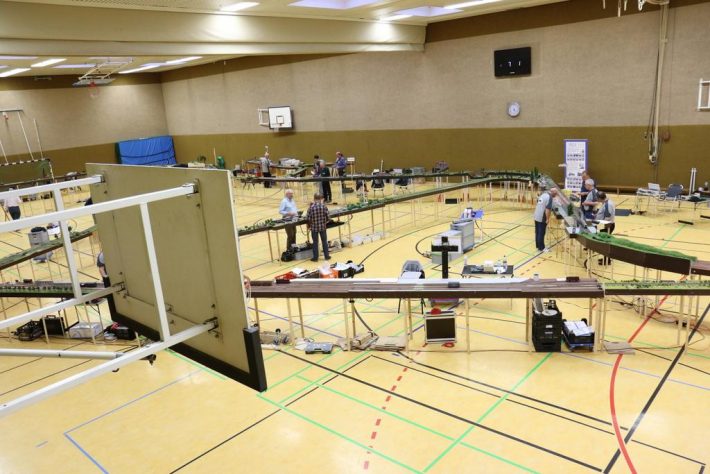 Mehrmals im Jahr treffen sich die Spur Null Modellbahner im Norden, um in einer großen Turnhalle eine gemeinsame Modulanlage aufzubauen.