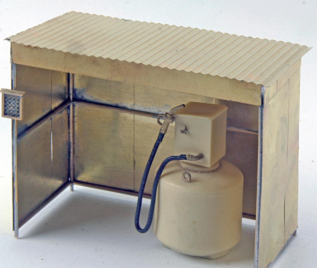 Das Vorbild dieser kleinen Bastelarbeit steht in Neheim-Hüsten und dämmert seinem Abriss entgegen. Es handelt sich um eine schlichte Stahlrohrkonstruktion, die dem Schutz des Wiegebalkens einer Gleiswaage diente. Das hier vorgestellte Modell hat das Konstruktionsprinzip (soweit man davon sprechen kann) übernommen, ist aber universeller als Haltepunkt, Bushaltestelle oder Überdachung einer kleinen Tankanlage einsetzbar.
