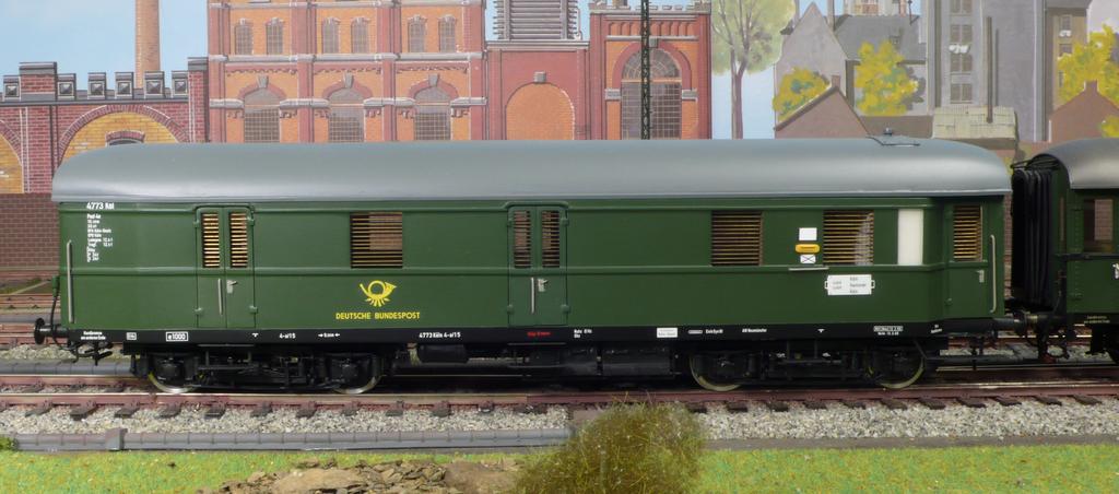 Auf gleicher Basis wurden auch einige Postwagen Post 4e hergestellt. Die Wagen stammen aus einer Zeit, in der man kaum Modelle fertig kaufen konnte – und F-Züge in der gezeigten Ausführung gibt es ja bis heute nur als superseltene Kleinserie.
