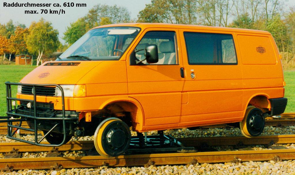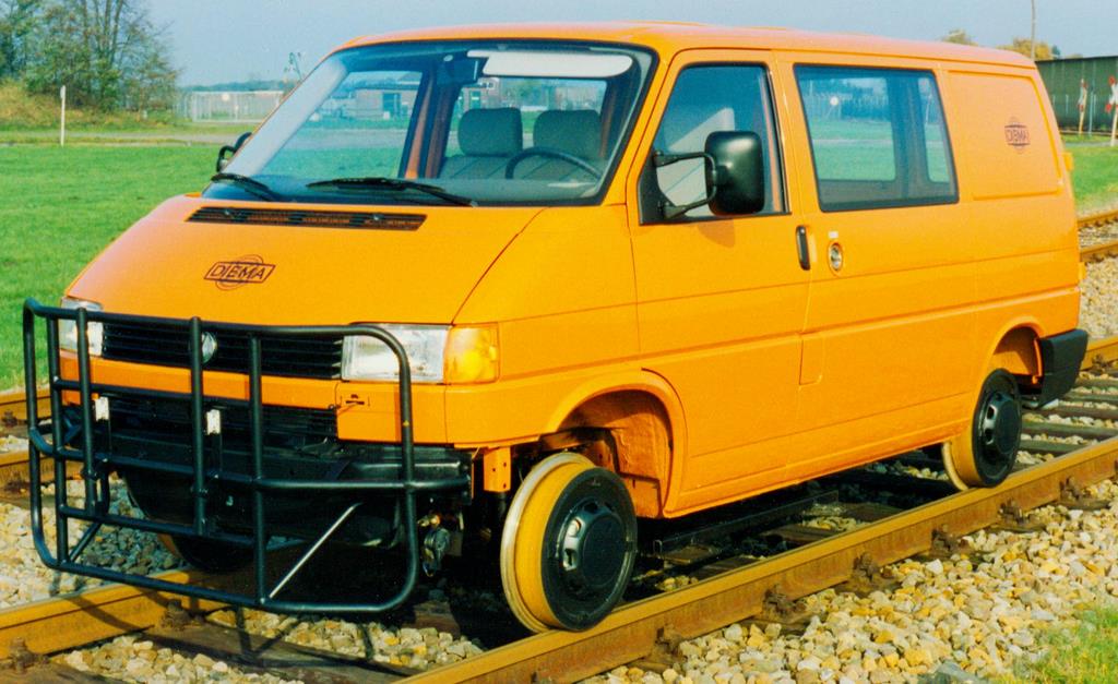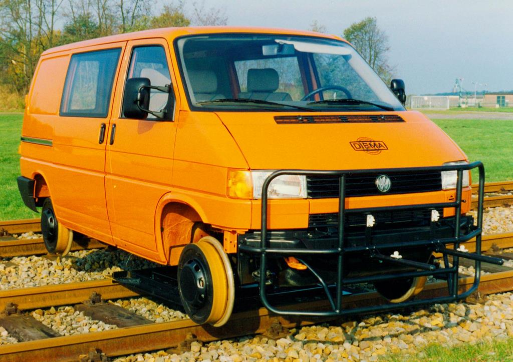 Die Diepholzer Maschinenfabrik Fritz Schöttler GmbH DIEMA, Diepholz, die 1993 in Konkurs gegangen ist, hat in Zusammenarbeit mit Volkswagen auch aktuelle VW Busse für den Schienenverkehr umgebaut, wie die Bilder zeigen. Dieses Fahrzeug würde in die Türkei verkauft. Wer also moderne Epochen fährt, findet schon eine Ausrede für einen solchen Schienenflitzer (Privatunternehmen, Probefahrt?)