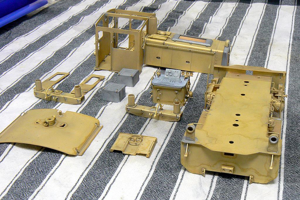 Nachdem alle Teile komplett verlötet wurden, kann es jetzt im zweiten Teil an die Lackierung und das Finish gehen. Wichtig ist, dass alle Rückstände von Lötfett oder Flussmitteln gründlich entfernt werden. Deswegen wurden die Einzelteile der Lok sandgestrahlt. So haftet die Farbe am besten.