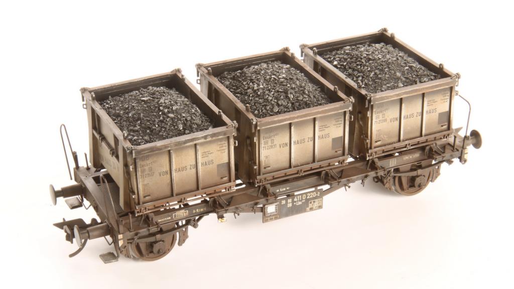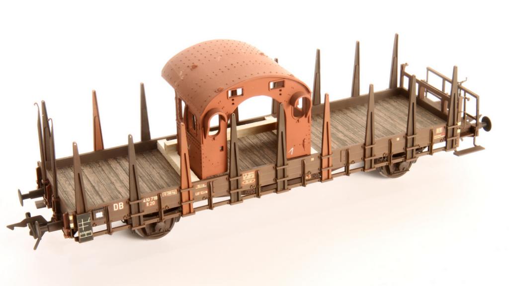Die ungewöhliche Ladung mit dem Dampflok-Führerhaus wurde nach einem Vorbildfoto gestaltet. Die Ladegüter sind sofort verfügbar.