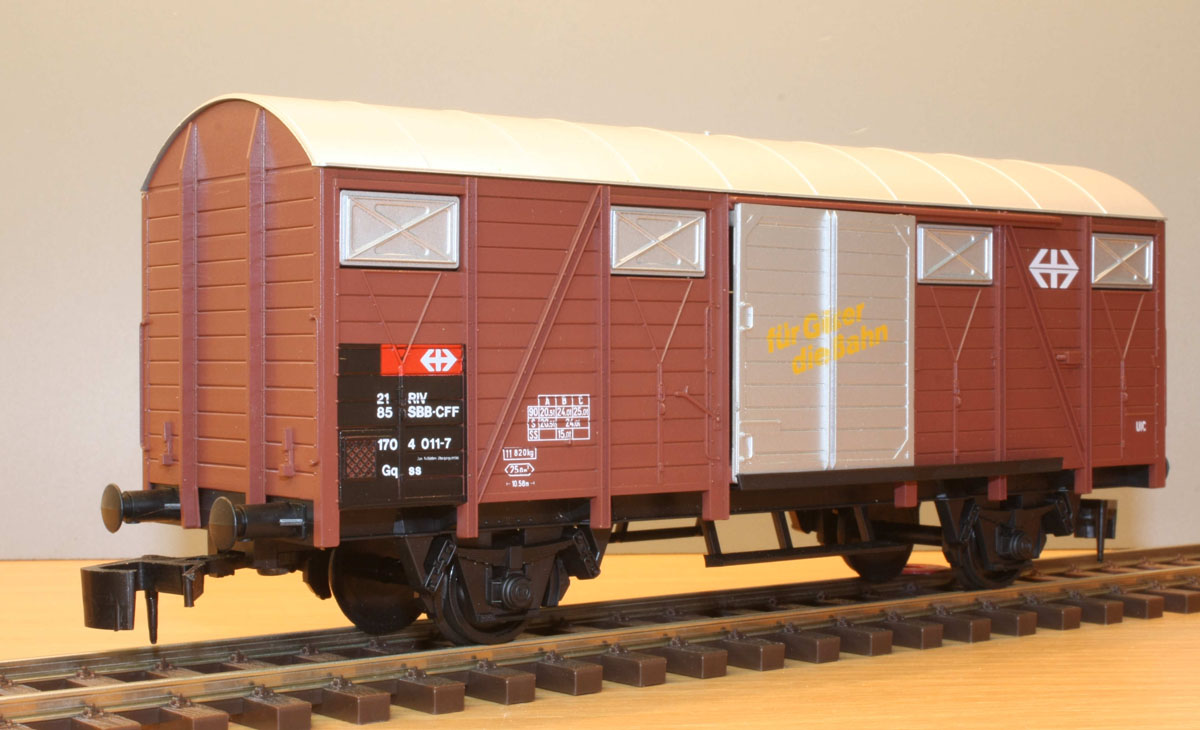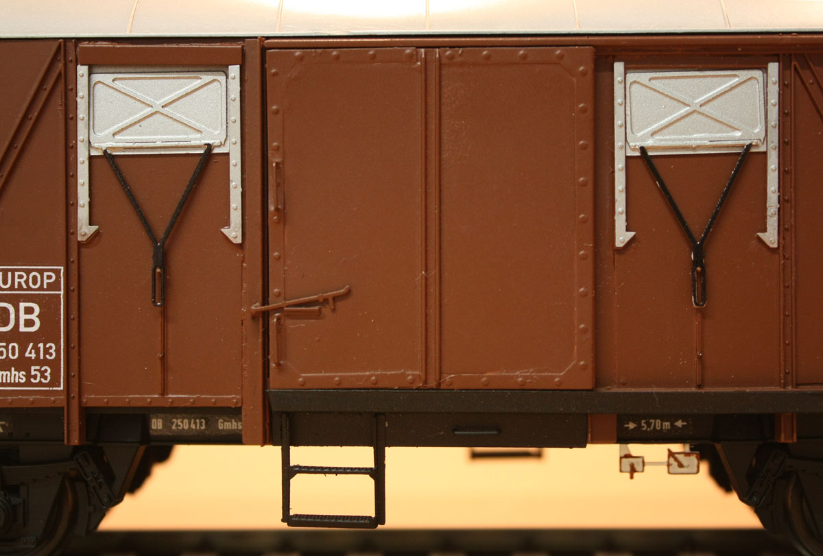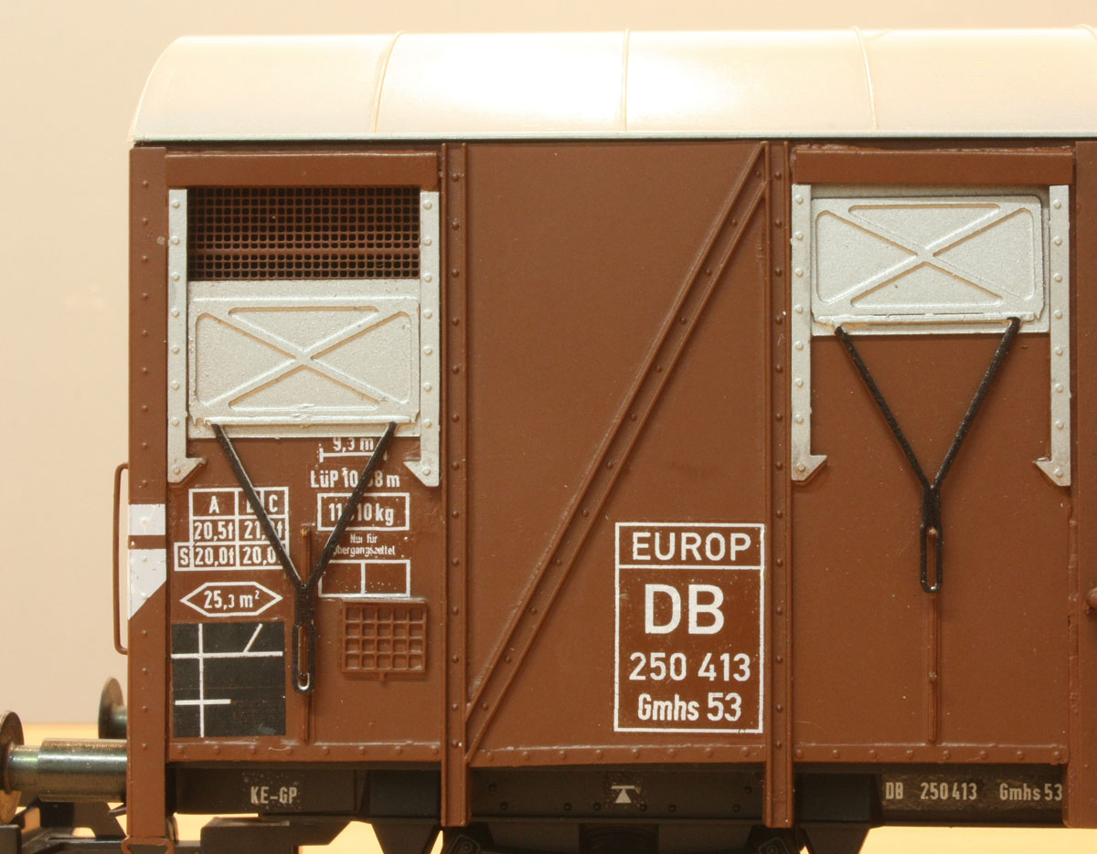 Wie schon erwähnt, ist es aus deutscher Sicht schade, dass Lima die Holzverbretterung nachgebildet hat. In Italien, Frankreich und der Schweiz war diese Bauform deutlich häufiger vertreten als bei der DB. Was liegt also näher, an diesem Umstand etwas zu ändern? Weiter hat Lima bei der Konstruktion auf die Fertigungskosten geachtet und eine Befestigungsmethode für das Dach gewählt, welche gleichzeitig das farbliche Absetzen der Ladeklappen ermöglicht und die Befestigung des Daches erleichtert. Die Folge sind nicht gerade sehr schöne Klappen, die zu tief in den Seitenwänden liegen und nicht sehr vorbildgerecht wirken.