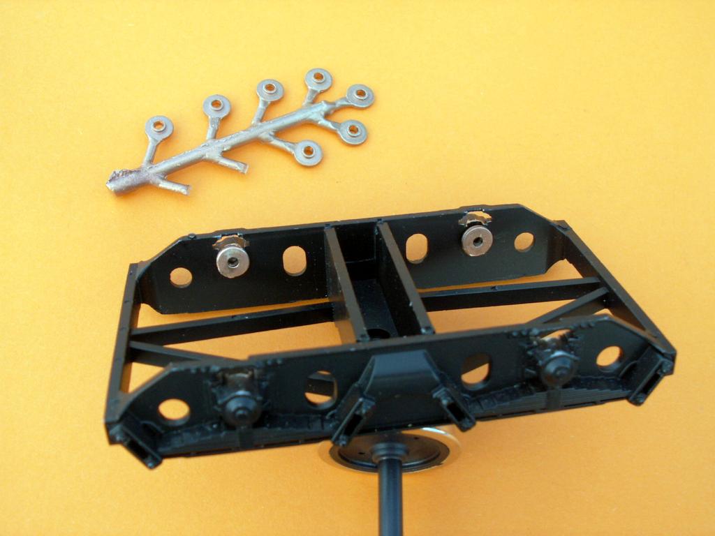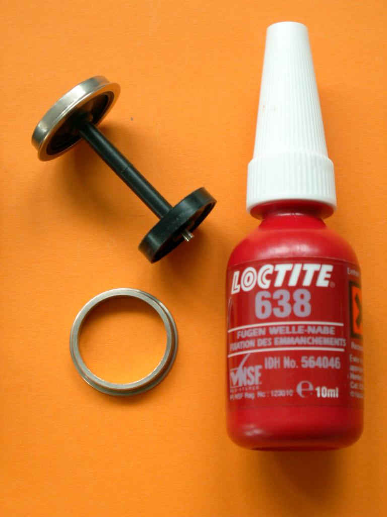 Während sich das Problem mit den abfallenden Radreifen sehr einfach mittels LOCTITE „Schraubensichrung“ Nr. 270 und sogar „Fügeverbindung“ Nr. 638 lösen lässt, sind die gebotene Achslagerung sowie die Federung in meinen Augen als Techniker absolut unbrauchbar. Zum einen ist es die Lagerung einer Achse in einem Federstahldraht mit nur Linienberührung (= Einfressen des dünnen Federstahls in die Achse), zum anderen eine Federung, die zwar gut gemeint ist, aber so leider nicht funktionieren kann. Aber bestimmt hatte Herr Hübner eben auch unter dem Druck gestanden, dass Radsätze generell gefedert sein müssten…hoppla, und da kommen wir zu einem ganz heiklen Thema, bei dem sich die Geister scheiden und schon unendlich viel diskutiert und philosophiert wurde. Aber diese Diskussion soll hier nicht Thema sein, denn für mich ist eine Federung bei Drehgestellen mit so kurzem Achsstand ein Unsinn und überhaupt nicht notwendig.