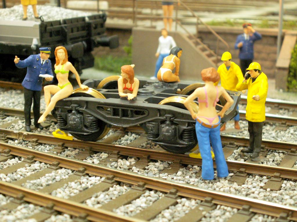 Wie es der Zufall wollte, fand während dem Entlad der ersten beiden Drehgestelle auf der „Abstellgruppe Süd“ ganz in der Nähe am Rheinufer ein Photo Shooting für ein bekanntes Männermagazin statt. Und so kam der Gedanke auf, dass doch der Kontrast zwischen zarten, weiblichen Rundungen und hartem, kühlem Stahl eine ideale Kombination ergeben würde.