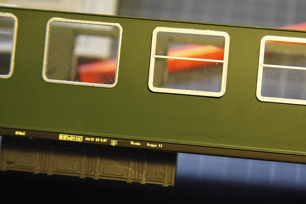 Nun entsprechen die damaligen Modelle nicht mehr dem heutigen Modellstandard, insbesondere nicht die Fenster. Mehrfach schon haben sich Hersteller daran versucht, andere Fenster für diese Wagen zu liefern. So wurden vor einigen Jahren solche angeboten, die in die vorhandenen Öffnungen eingesetzt wurden, aber ihren eigenen Rahmen hatten. Den Rahmen musste man z.B. mit einem Lackstift farblich behandeln. Das Ergebnis war auf jeden Fall besser als beim Originalmodell, obwohl die Fenster nun quasi doppelte Rahmen hatten: Die am Wagenkasten erhaben hervorgehobenen und die am Plexiglasfenster.