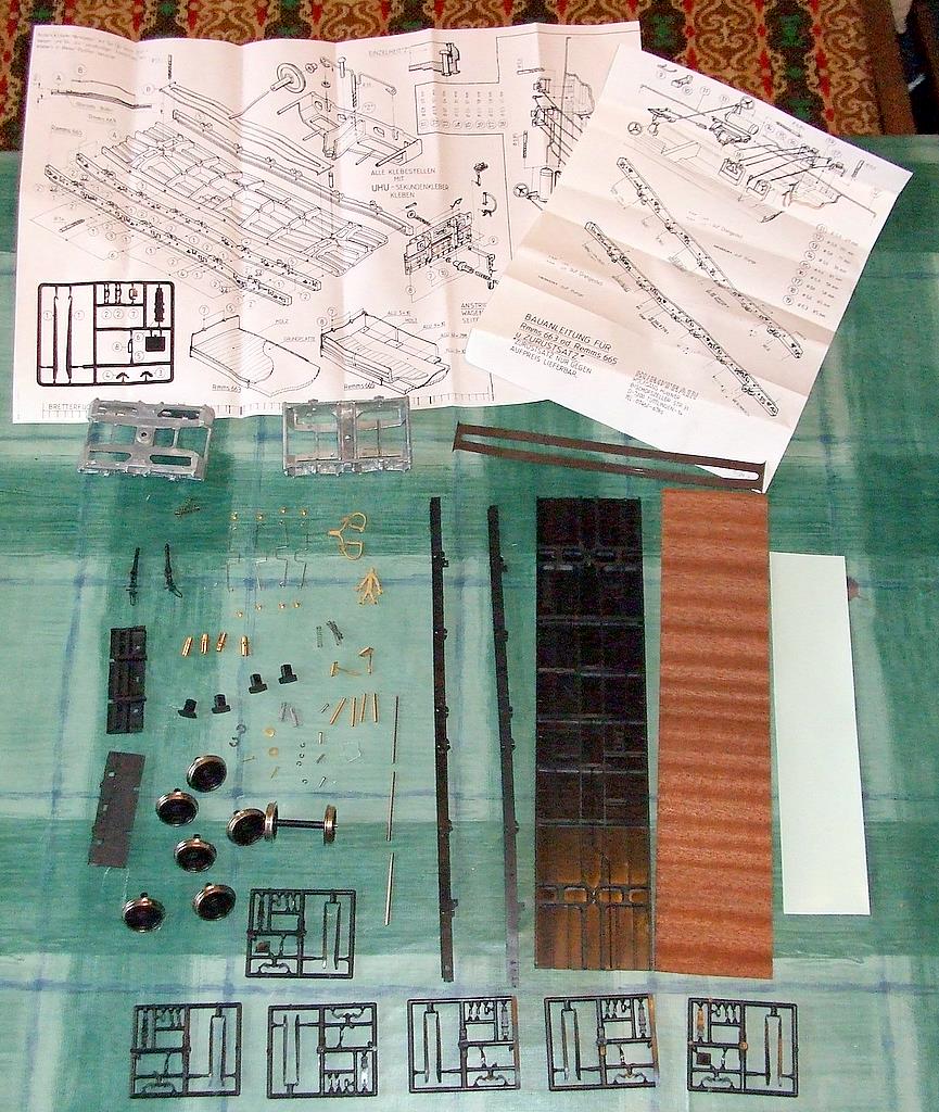 Wie sich im Nachhinein rausstellte, hatte ich den etwas besser ausgestatten Bausatz erworben. Es gab zwei verschiedene Versionen der Bausätze mit unterschiedlichen Umfang: einmal mit Messingbuchsen für die Lagerung der Radsätze, und einmal ohne diese Buchsen.