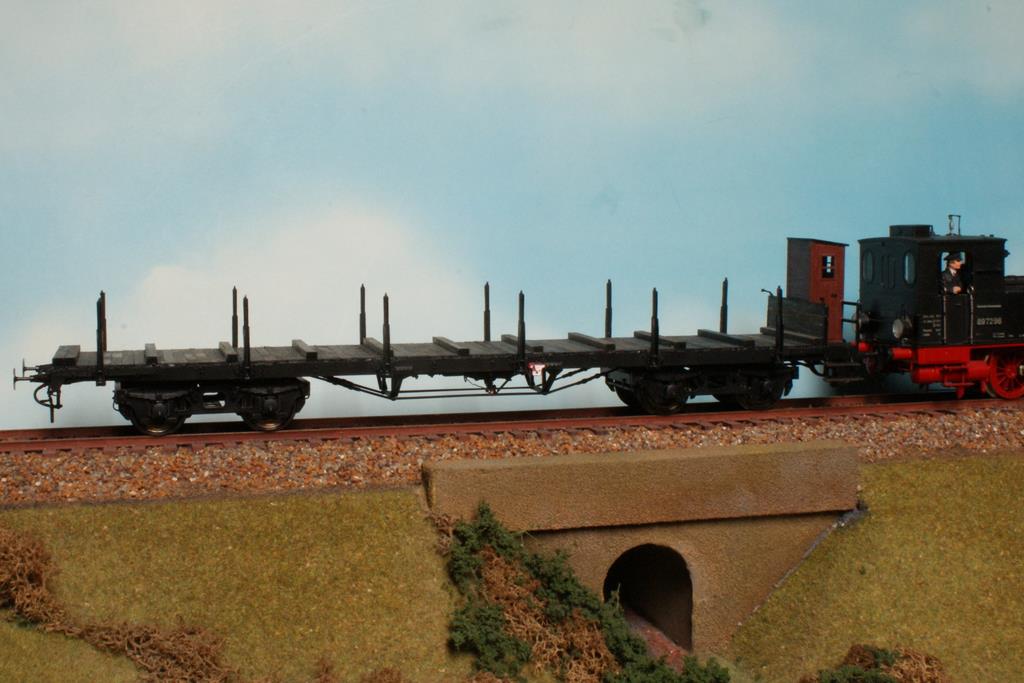 Schon immer stand mir der Sinn nach einem 4-achsigen Rungenwagen. Eine gute Zeichnung fand sich in einer etwas älteren Modellbahnzeitschrift, im Heft HP1 Nummer 1. Praktisch, wenn man ein kleines Archiv hat, auch in alten Ausgaben finden sich schöne Anregungen und eben vor allen auch Zeichnungen.