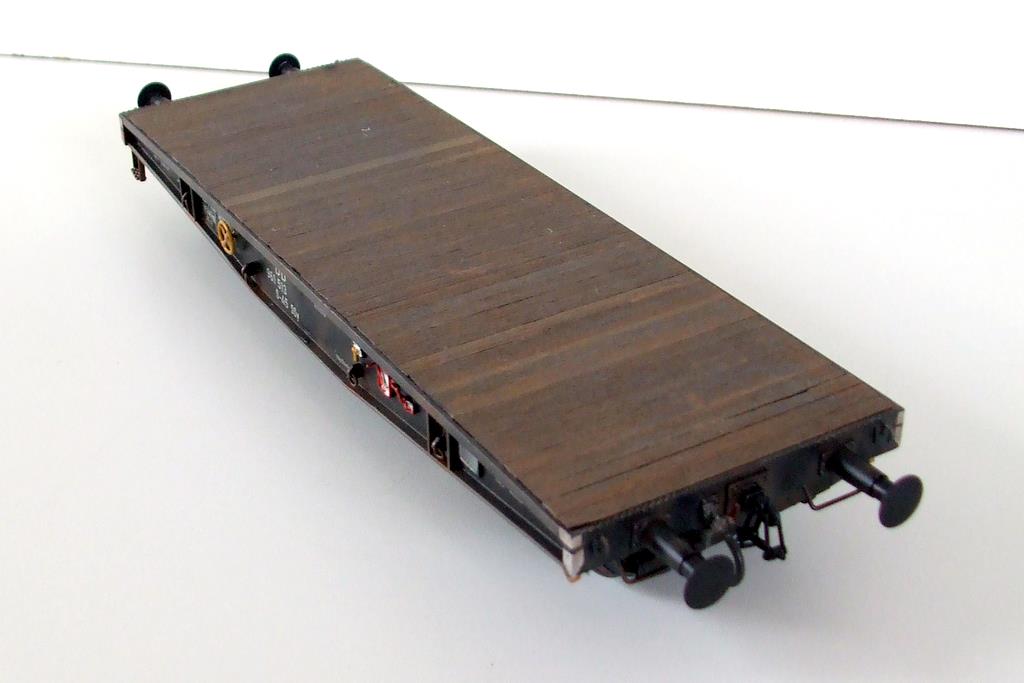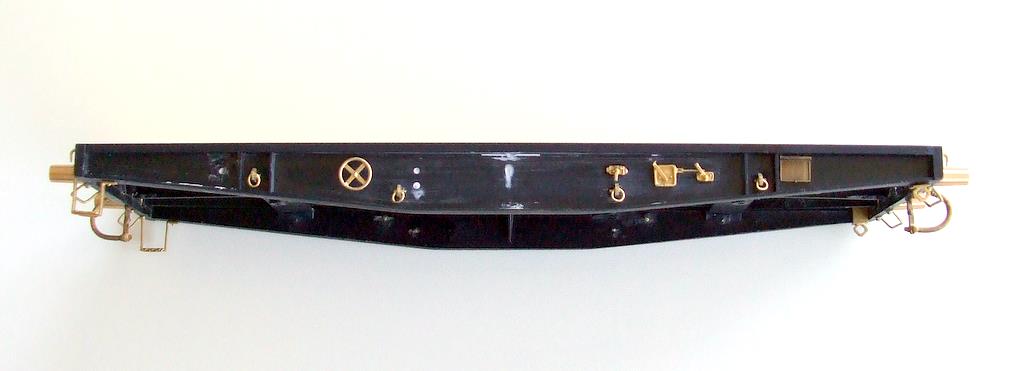 Schwerlastwagen mit Messingplatte als Boden, plus Messingprofil zwischen den beiden Drehgestellbefestigungspunkten