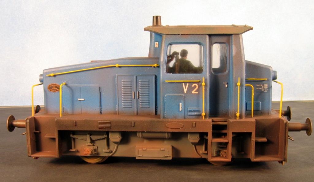Die Beschriftung ist aus Resten vom Nassschiebebildern und Abreibebildern zusammengesetzt, sie soll die „frei Schnauze“ Beschriftung einer kleinen Industriebahn darstellen, die nicht nach Vorschriftenbuch lackiert wurde.