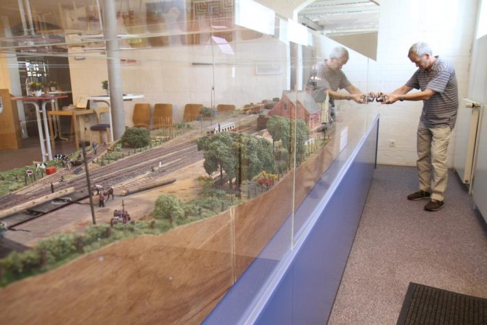 Eine ungewöhnliche Anlage haben die Modellbahnfreunde Osterholz-Scharmbeck auf die Beine gestellt. Beim diesjährigen Osterholzer Modellbahntag im Januar 2017 war eine eingleisige Bahnstrecke aus Modulen durch das Teufelsmoor zwischen Worpswede und Osterholz-Scharmbeck zu sehen.