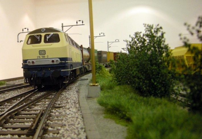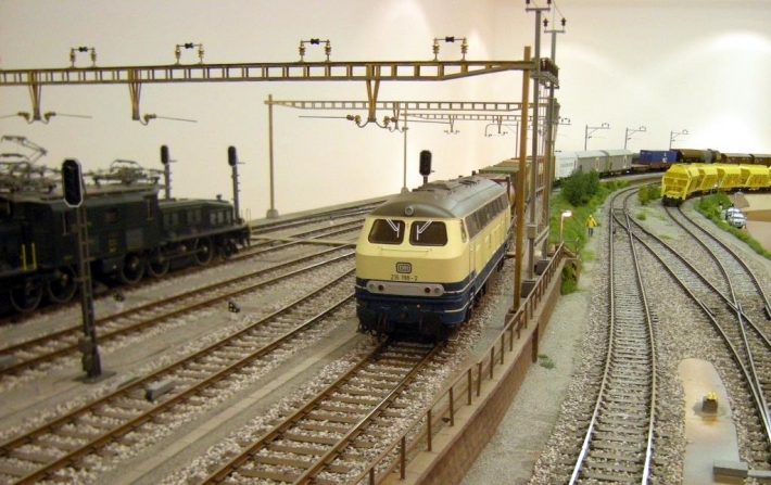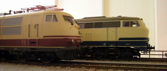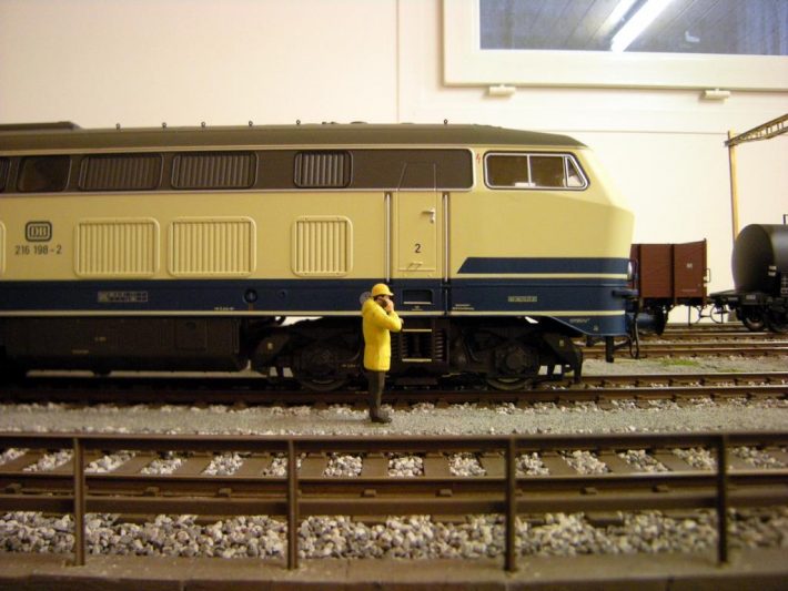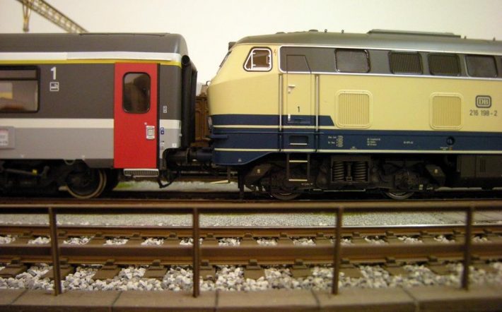 Die BR 216 in der elfenbein – ozeanblauen Lackierung der Epoche 4 war auch in der Schweiz unterwegs, zumindest auf der einen oder anderen schweizer Anlage. Die Lok hatte einen Güterzug aus Deutschland gebracht; anschließend wurde ein EuroCity Zug gebildet, mit  Schweizer ...