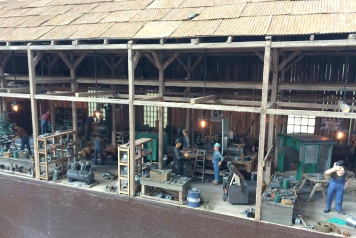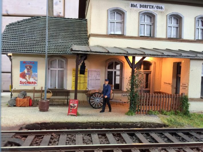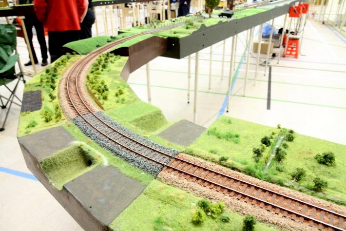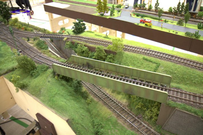 Die Streckenlänge betrug etwa 130 Meter, mit Fiddleyards am einen Ende und mehreren großen Bahnhöfen ...