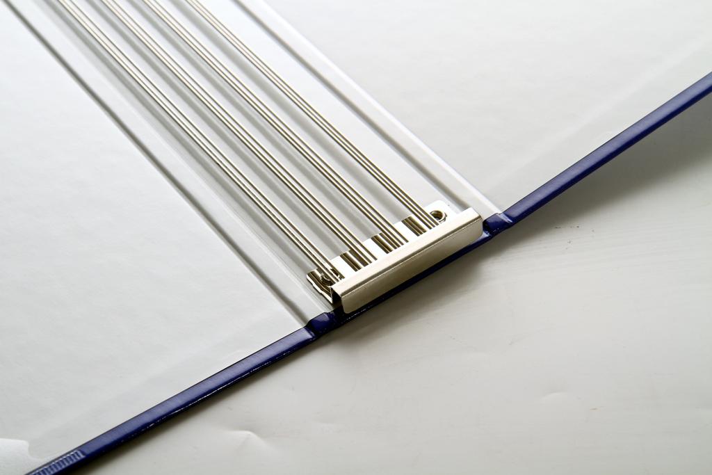 Die Außenseite und der Rücken sind mit dem SNM Logo bedruckt und mit abwischbarer und strapazierfähiger Glanzfolie kaschiert. Die Drahtstabmechanik mit vier Kammern und die Mappe sind genau auf die Heftgröße abgestimmt, so dass sich die Hefte auch bei häufiger Benutzung nicht an den Ecken abstoßen. Das Einfädeln der Hefte ist ganz einfach. Kleiner Trick: Einfach den linken Teil der Mappe aufrecht stellen, damit die bereits eingefädelten Hefte senkrecht stehen. So lässt sich auch das letzte Heft pro Kammer leicht einhängen.