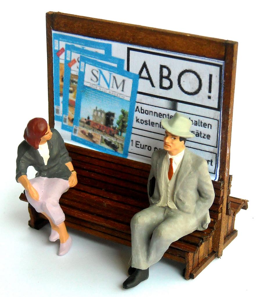 Es gibt sie in zwei Versionen: Einmal mit Fläche zum Plakatieren/für Werbung und einmal mit Stationsschild. Die jeweiligen Flächen sind neutral und jeder kann sie nach Belieben bekleben. Die Doppelbank mit Stationsschild kostet 16,50, die mit Werbefläche 16,95 Euro.