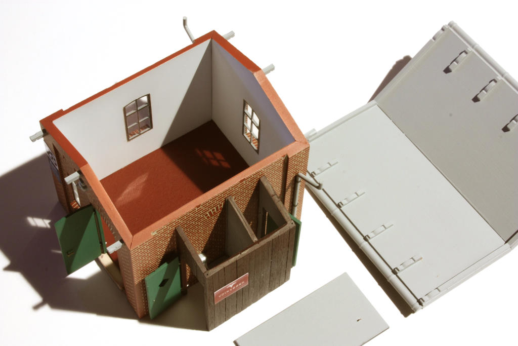 Real Modell bringt zwei interessante Neuheiten rund um den Bahnhof: Ein kleines, universell einsetzbares Bahnposten-Häuschen mit Toilettenanbau und einen auf die Lenz Köf abgestimmten kleinen Lokschuppen. Beide Gebäude sind in feinem Ziegelmauerwerk gebaut und als Resin-Bausätze zu haben.