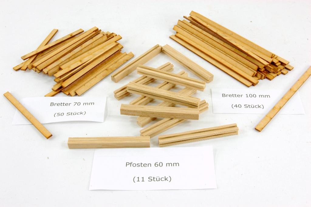 Ein neuer Hersteller bietet Zubehör für Spur Null an: Thomas Ermels hat als Erstlingswerk einen Schotterbansen entwickelt. Der Bausatz besteht aus 90 Brettern in zwei Längen, die aus MDF gelasert wurden. Dazu kommen elf Holzpfosten mit Nuten; sie dienen als senkrechte Stützen.