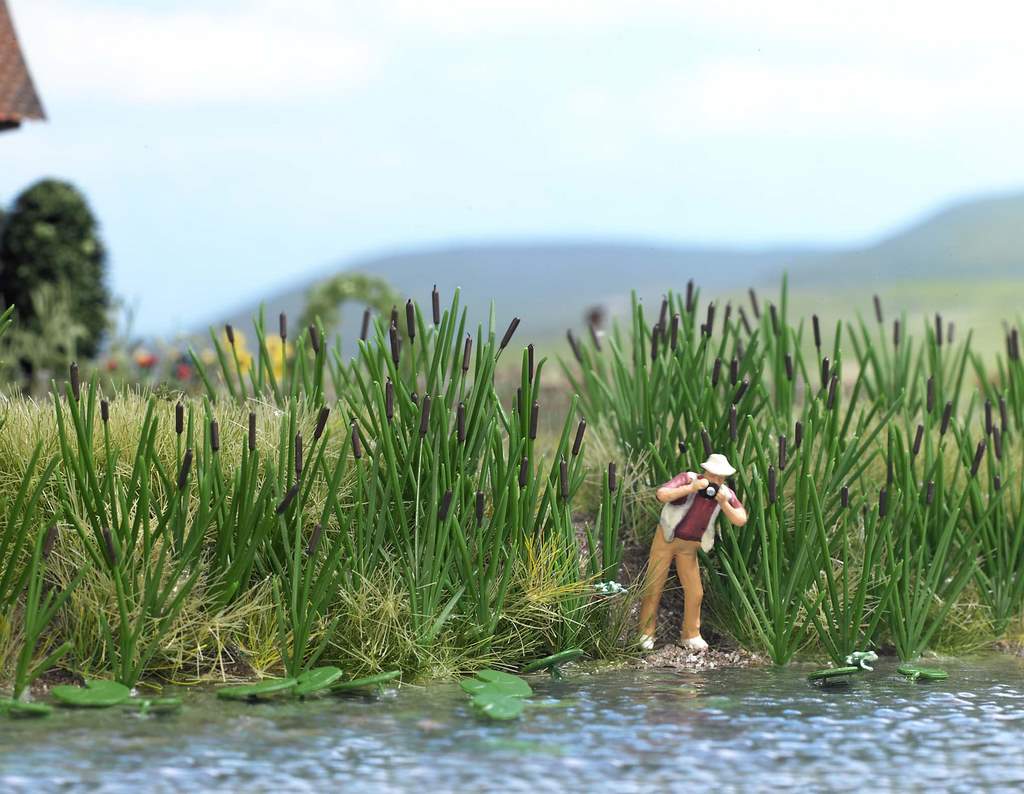 Gräser/Rohrkolben: Bausatz für 120 Rohrkolbenpflanzen, wie sie am Rand von Gewässern und Sümpfen zu finden sind. Realistisch in Kunststoff-Spritzgusstechnik dreidimensional hergestellt. Erhältlich für 6,99 Euro.