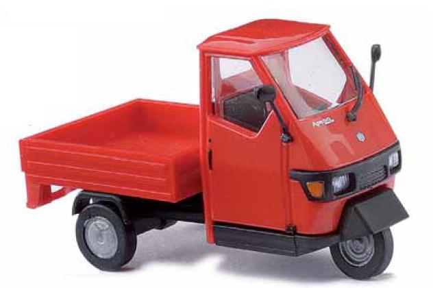 Piaggio Ape 50 mit Pritsche. Der dreirädriche Lieferwagen kommt in drei Farbversionen. Das Modell ist im Maßstab 1:43 gehalten und besteht aus 27 Einzelteilen. Das Vorbild entspricht den heute aktuell gebauten Modellen und ist aus Kunststoff gefertigt. Es kostet 19,99 Euro. Ape bei Wikipedia