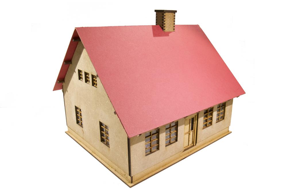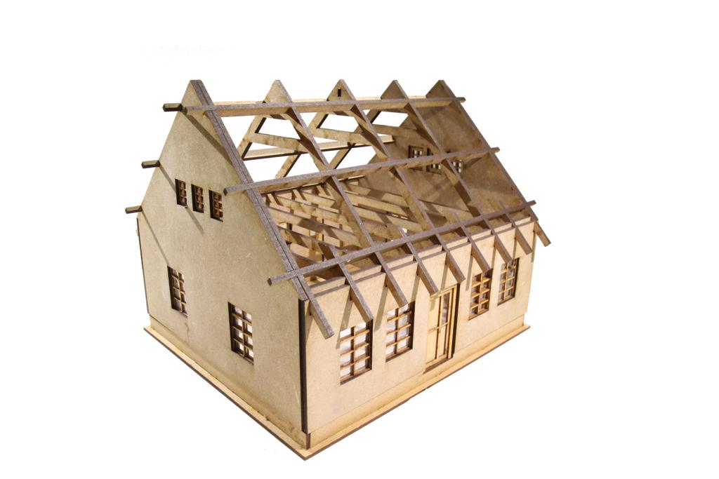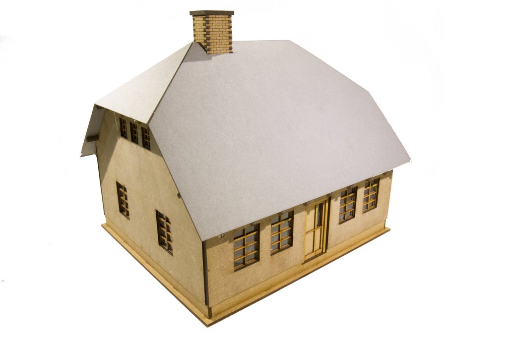 Im Programm des Lasercut Herstellers finden sich jetzt auch ein Einfamilienhaus mit zwei Dachformen: Ein Walmdach und ein Satteldach. Auch der Dachstuhl ist nachgebildet, so dass man auch ein Haus im Bau darstellen kann.