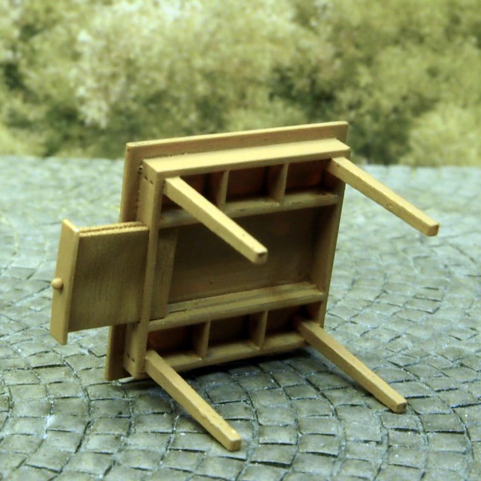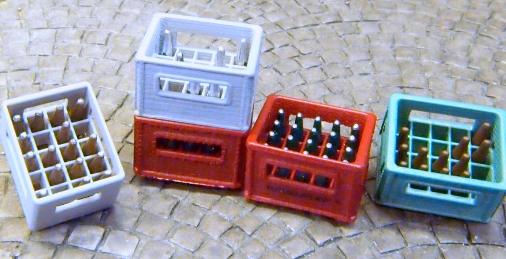 Direkt aus dem 3D Drucker kommen Zubehörteile von Thomas Schwarzenbart: Europaletten, Obstkisten, ein Tisch mit herausziehbarer Schublade, Wein- und Bierflaschen samt Bierkiste sowie Heizkörper können über die Webseite bestellt werden. Die Abwicklung funktioniert über den 3D-Druck-Dienstleister Shapeways, man erhält also unbehandelte 3D Drucke, die gereinigt und lackiert werden müssen.