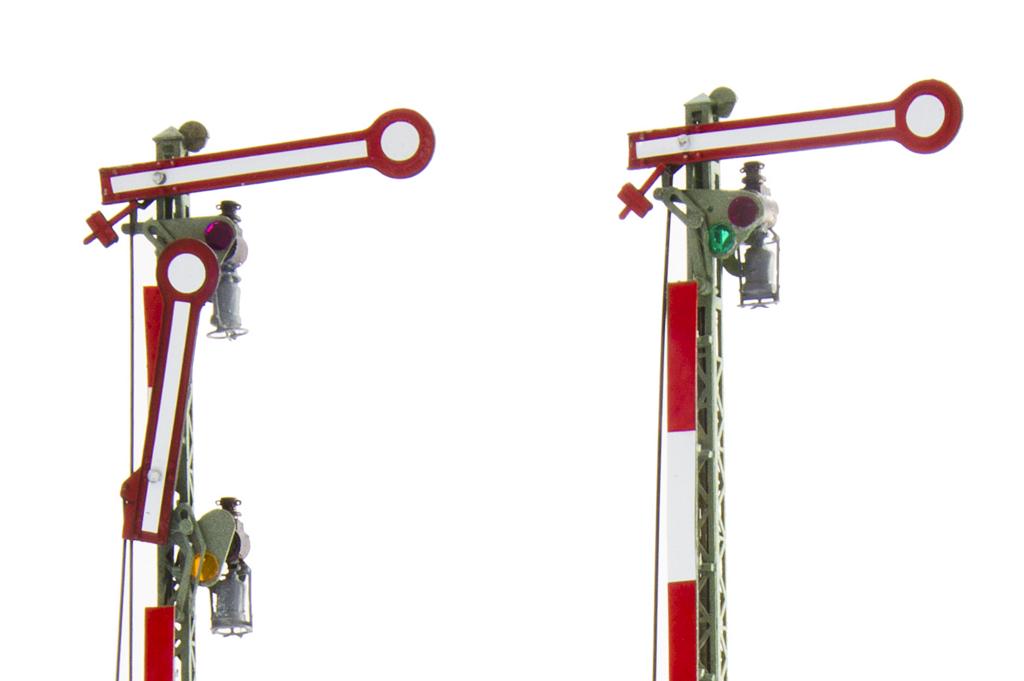 Die Formsignale sind eine komplette Neuentwicklung: Lieferbar ab sofort sind bisher drei Versionen mit dem 8 Meter Standardmast: einflügelig (77,30 Euro) sowie zweiflügelig gekoppelt und ungekoppelt (jeweils 92,30 Euro).