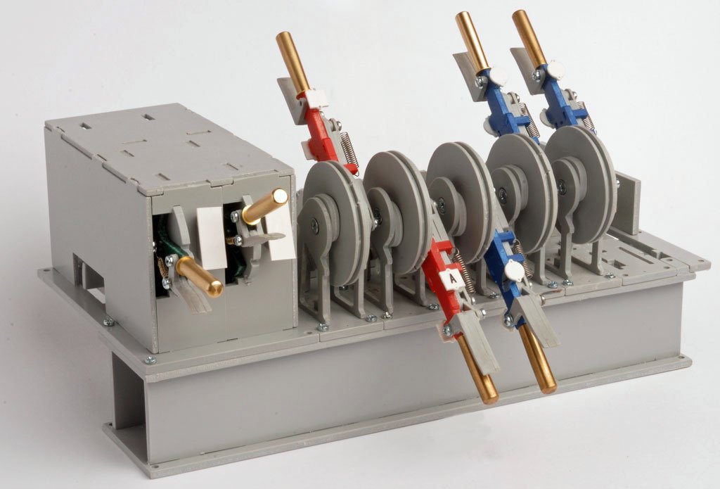 Das bereits erhältliche mechanische Stellwerk wird weiter ausgebaut. Neben den Weichen- und Signalhebeln sind jetzt dazu passend Fahrstraßenhebel und Verschlussregister zu haben. Das Verschlussregister stellt sicher, dass alle Weichen korrekt gestellt sind, bevor eine Fahrstraße freigegeben wird und das Signal gestellt werden kann. Ganz nach Vorbild läuft das innerhalb des Stellwerkes mechanisch ab; der Stellbefehl zu Weiche und Signal wird jedoch über elektrische Schalter übermittelt.
