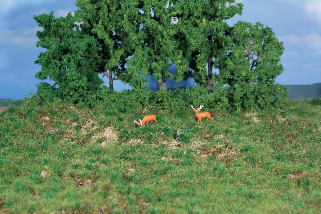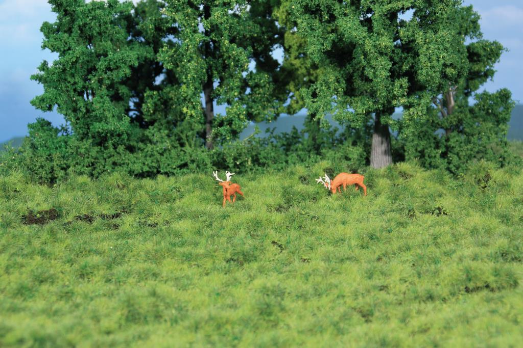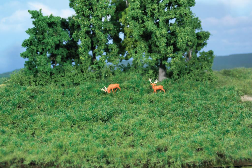 Das so Heki Strukturgras kommt in vier neuen Ausführungen: hellgrün, dunkelgrün, Herbst und Waldboden. Die Grashalme stehen auf einem flexiblen Träger von 190x300mm Größe in unregelmäßigen Büscheln. Das Strukturgras kann am Stück oder in einzelnen Stücken verwendet werden.