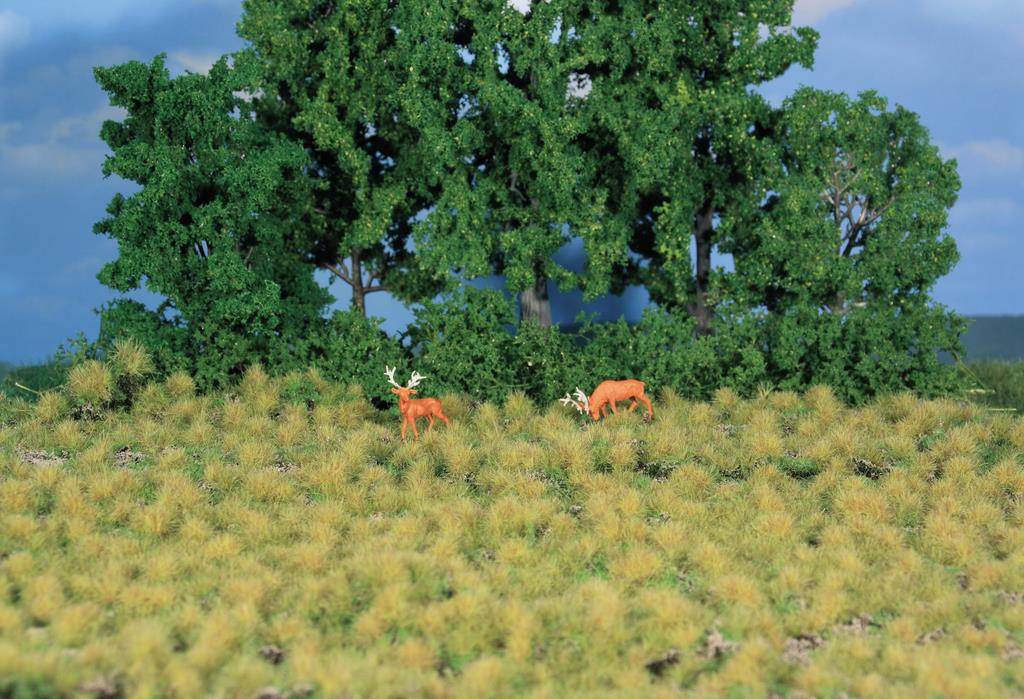 Eigentlich ist das Material zur Landschaftsgestaltung einigermaßen unabhängig von der Baugröße. Andererseits ist der große Maßstab hervorragend dazu geeignet, ein noch genaueres Augenmerk auf Gras und Strauch und Baum zu legen als in den kleineren Maßstäben. Heki bietet hierfür einige neue Produkte an: