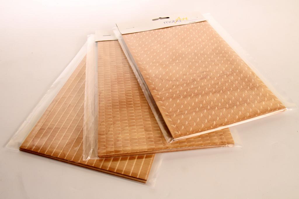 Lieferbar sind auch gelaserte Holzplatten mit unterschiedlichen Dachziegeln.