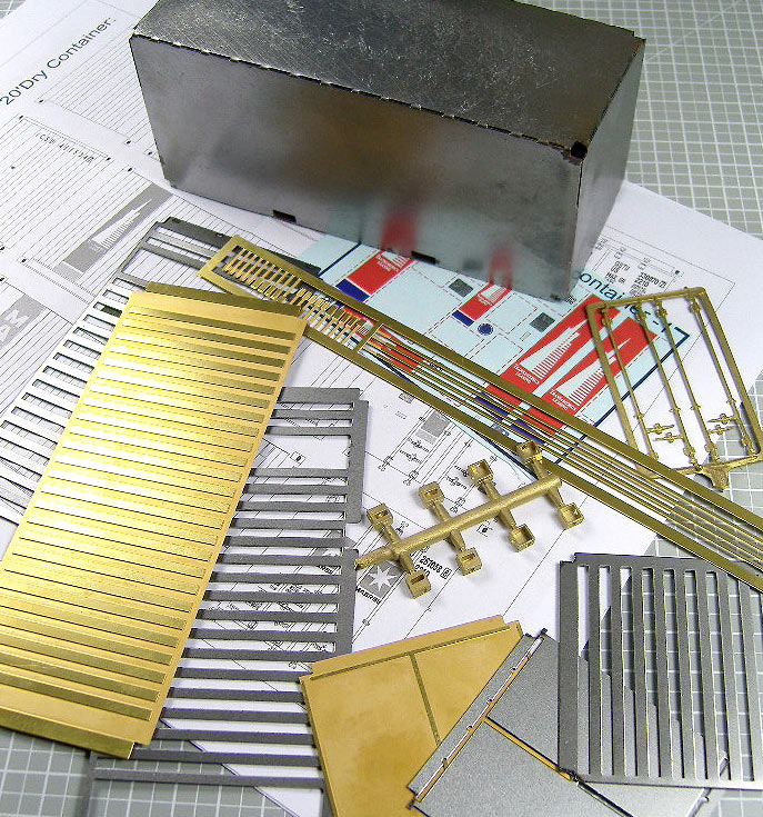 Georg Brückner bietet seit geraumer Zeit hochdetaillierte Container-Bausätze. Jetzt gibt es einen verbesserten Bausatz, mit bereits zusammengefaltetem und punktverschweißtem Grundkorpus. Dadurch ist die Löt-Arbeit auf ein Minimum beschränkt.