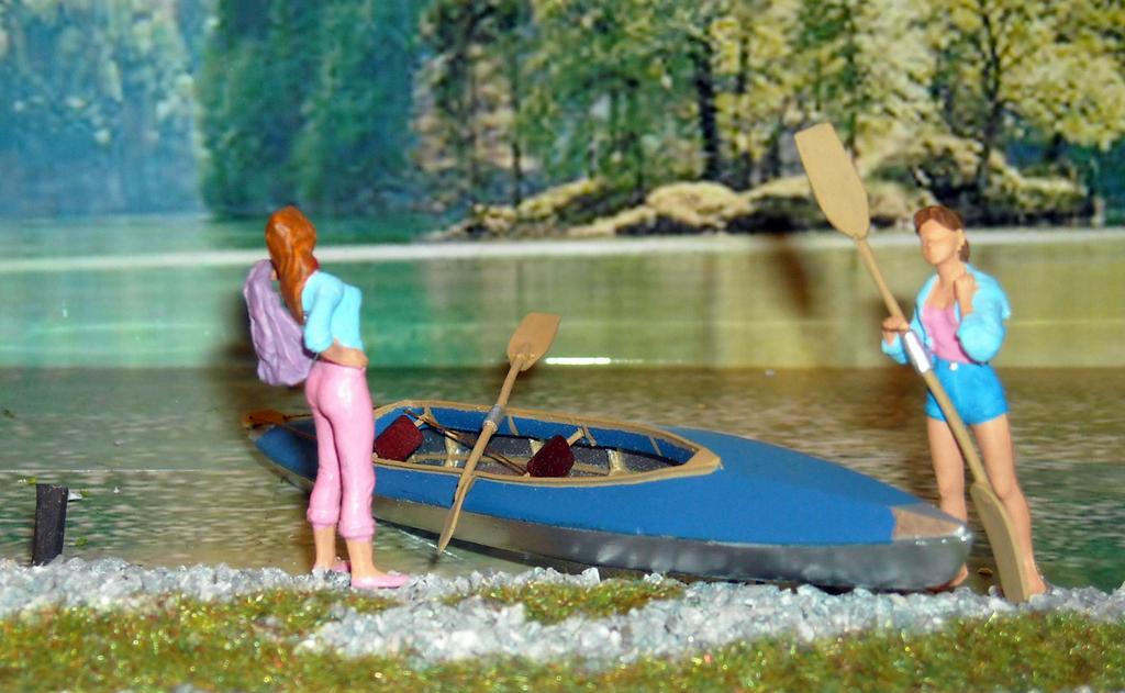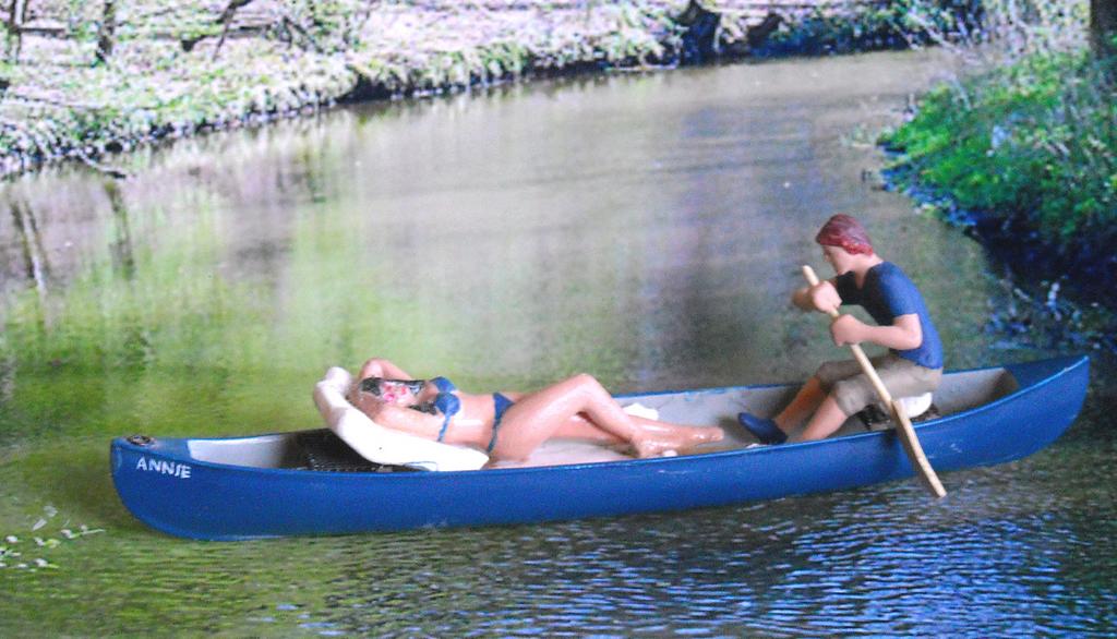 Passend zum Thema Wasser kommt der Paddler Klaus mit Kanu ins Bild. Auch ein Faltboot zur Abrundung des Paulo-Booteprogramms ist für 16,50 zu haben.