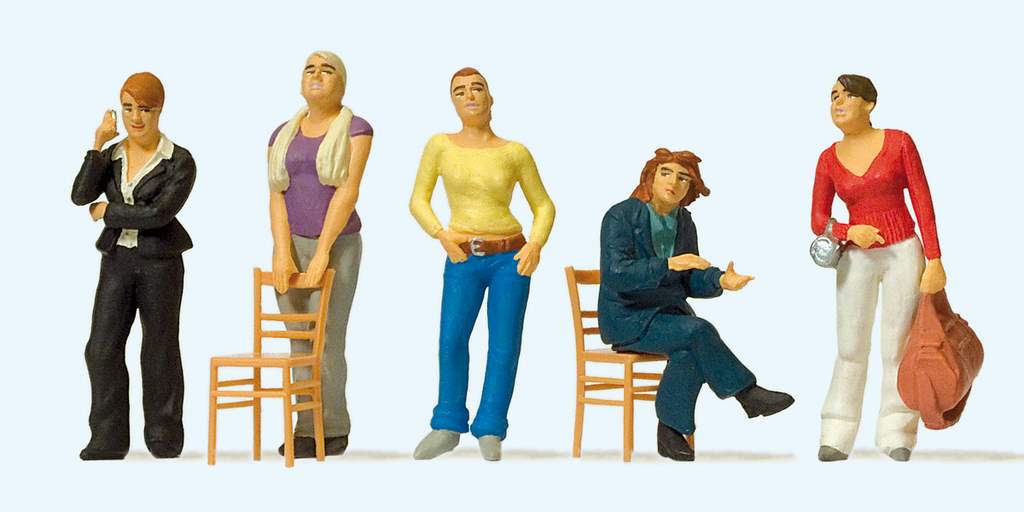 Die Figurenspezialisten bringen zwei neue Sets auf den Markt: Das Set Junge Damen (Best Nr. 65359) mit fünf Figuren und Stühlen, und das Set Sitzende und Stehende (Best. Nr. 65361). Jedes Set kostet 23,90 Euro. Es fällt allerdings schwer, sich eine passende Szene für die Figuren vorzustellen. Einige mit Tasche passen als Reisende, die Gruppe vielleicht als Partyszene oder in einer lockeren Versammlung oder Diskussionsrunde?