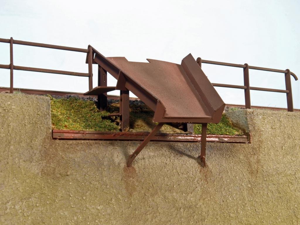 Eine ausführliche Bauanleitung beschreibt die Verarbeitung der Acrylteile für die Rutschenkonstruktion und die Mauern aus Spezialgips, die vorbildentsprechend als Stampfbeton-Konstruktion ausgeführt wurden. Für eine ländliche Kleinverladung ist die Rutsche ideal.