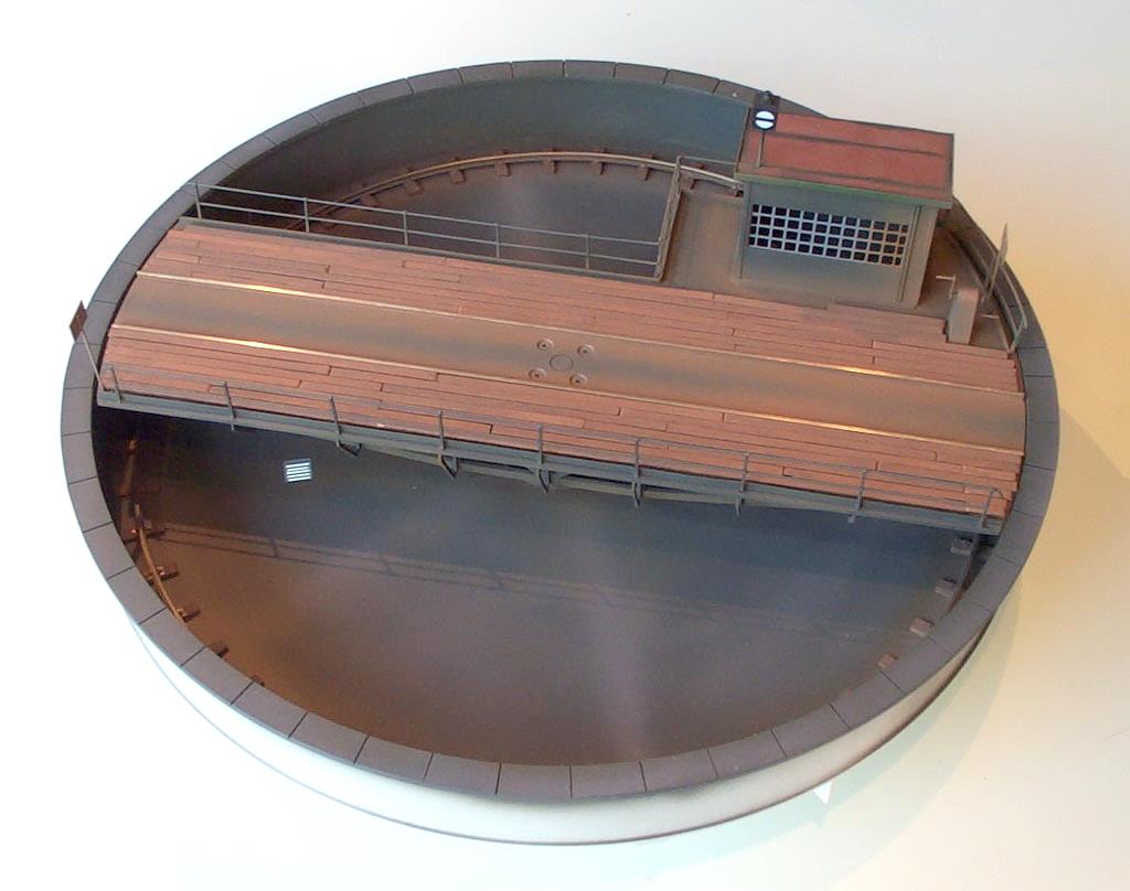 Ab April lieferbar ist eine 16-Meter Drehscheibe aus gefrästen Kunststoff- und Metallteilen. Den Bausatz bekommt man ab 299,–Euro. Verschiedene Antriebe stehen zur Auswahl. Das Foto zeigt ein Handmuster.