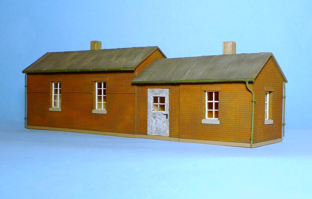 Ein neues Ziegelgebäude kommt von der Firma Müllers Bruchbuden. Wie alle Gebäudebausätze der Firma besteht das neue Gebäude aus Resin. Die niedrigen, aneinander gebauten Backsteinhäuschen stehen in der unmittelbaren Nähe der Gleisanlagen. Sie sind preiswert mit Teerpappe gedeckt und können auch als Nebengebäude, Schuppen, Hinterhofgebäude und für vieles mehr verwendet werden. Der Bausatz kostet 59,- Euro.
