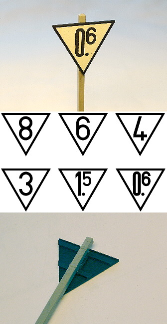 Für Epoche III Fahrer bietet Wenz weiterhin nun Universalbausätze für DB Signaltafeln an, denen ein Naßschiebebild-Bogen für folgende Tafeln beiliegt: