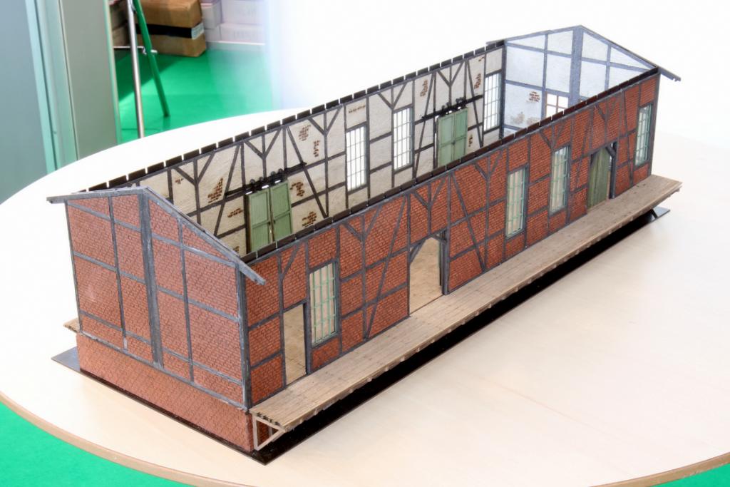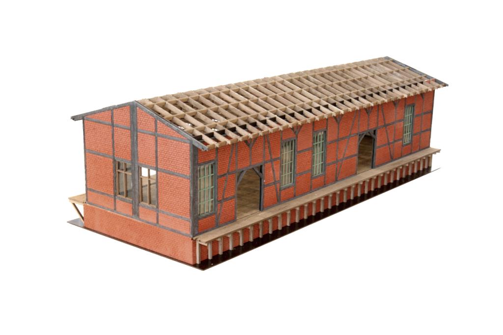 Der Güterschuppen soll auch als Halbrelief-Modell kommen. Das Vollmodell kostet 249 Euro, weitere Modelle sind in Planung. Der Vertrieb erfolgt über den normalen Modellbahn-Fachhandel.