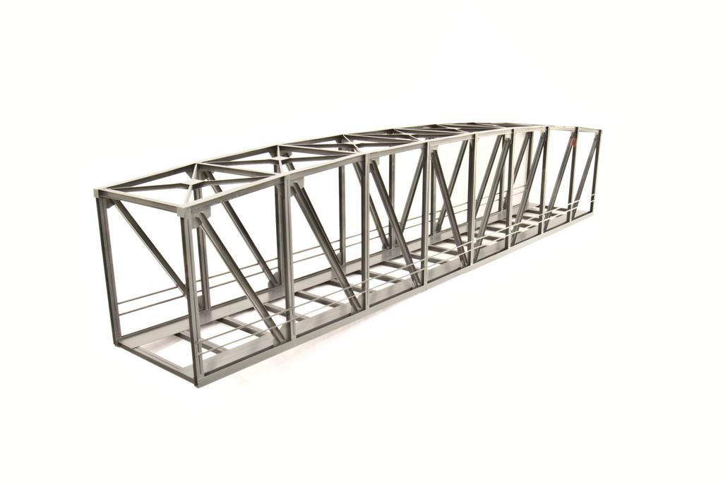 Die Modelle sind aus Metall hergestellt und verlötet. Knotenbleche und Nieten werde aus Kostengründen nicht nachgebildet. Nur die leicht gebogene Kastenbrücke K075 kommt mit Knotenblechen, was man sofort am Preis bemerkt. Maße: Länge/Höhe/Breite.