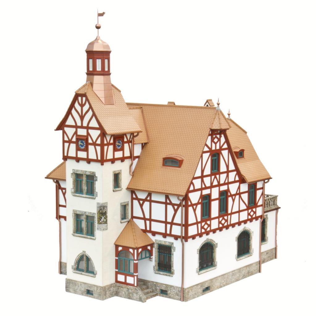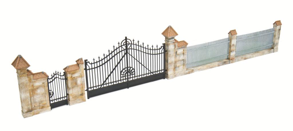 Eindrucksvoll ist die Gebäude „Gut Wolfgangshof“ mit Fachwerk und sogar einen kleinen Türmchen samt Turmuhr. Dazu passend gibt es einen Zaun mit gemauerten Stützen und Fundament sowie Eisengittern. Auch ein repräsentatives Tor gehört dazu. Mit einem Erweiterungsset kann man die Zaunlänge den eigenen Gegebenheiten anpassen.